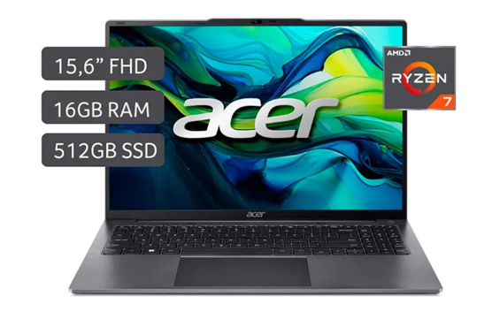 AL15-ACER-41P-R27P-ES – AMD R7 5700U – RAM 16GB DDR4 – 512GB SSD – Video Integrado AMD Radeon Graphics – FreeDOS – 15.6in FHD – Black